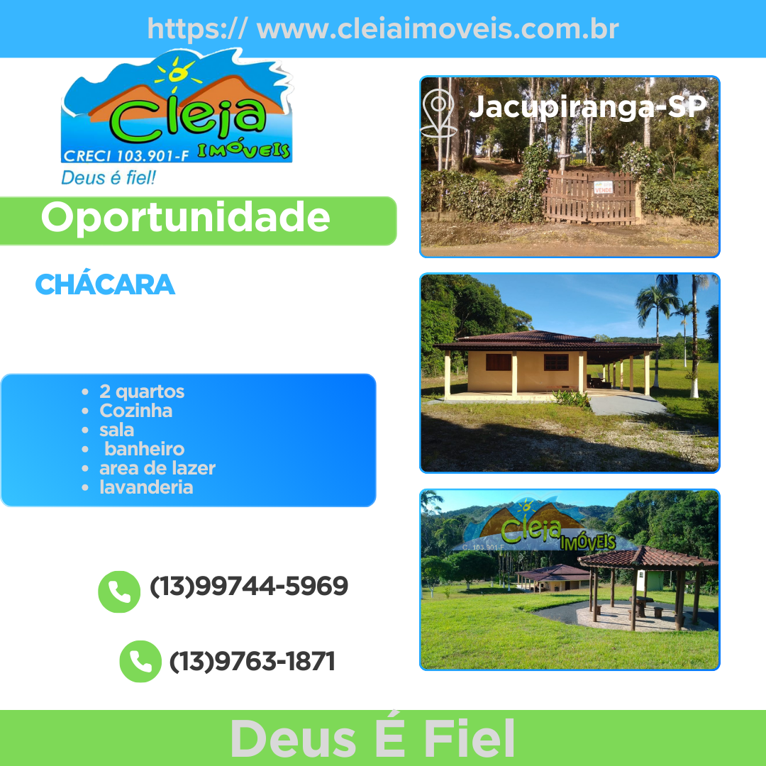 • Localização fácil acesso14km da cidade de Jacupiranga